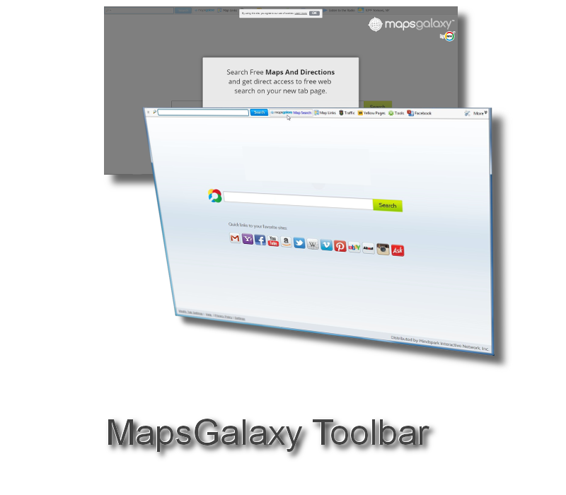 De MapsGalaxy Werkbalk is een browser hijacker die geïnstalleerde kan worden op willekeurige computers. Het programma kan worden toegevoegd aan de Internet Explorer, Google Chrome of Mozilla Firefox browsers.